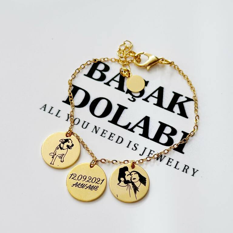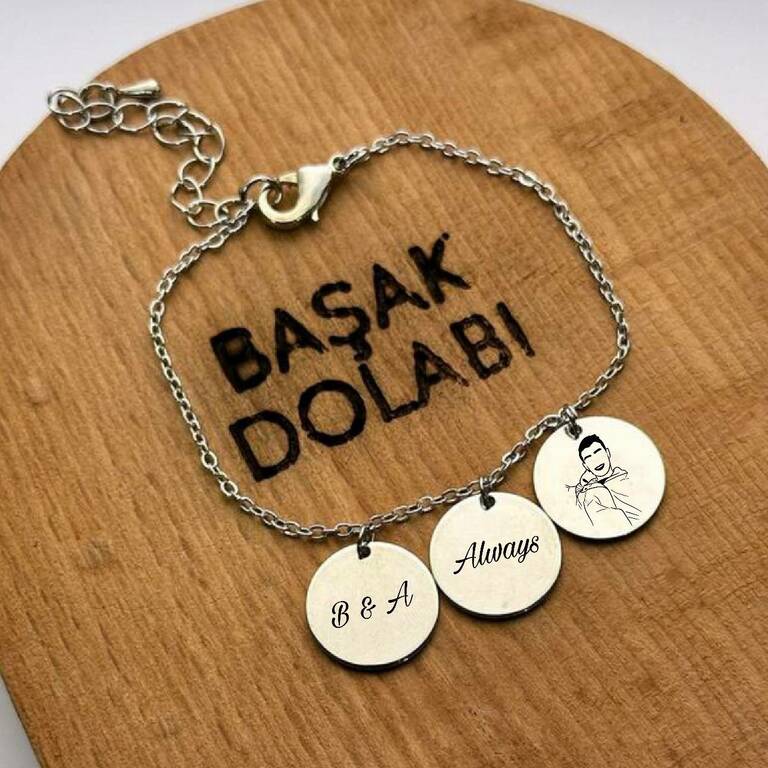 3 Plakalı Harf İsim ve Portre Detaylı Çelik Bileklik