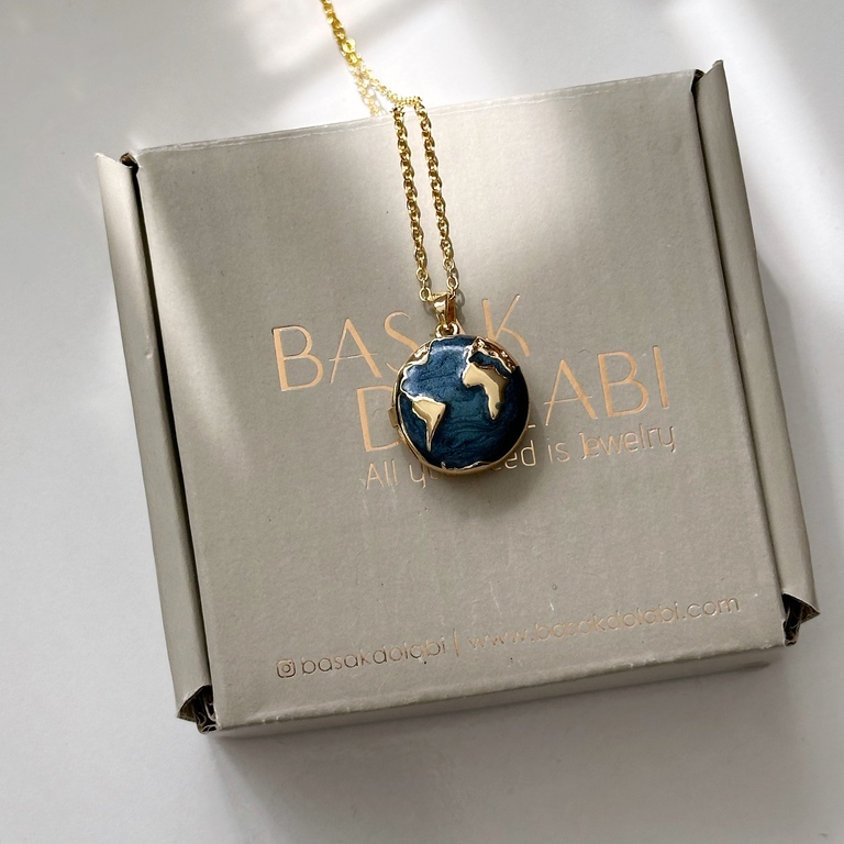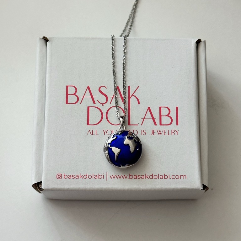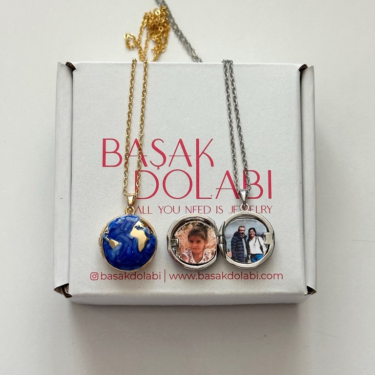 Fotoğraf Detaylı Açılıp Kapanabilir Dünya Locket Zincir Kolye
