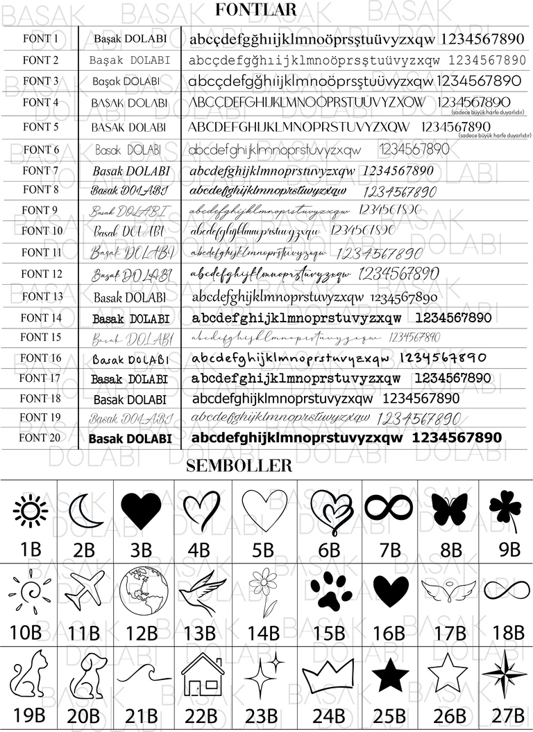 • FONT İÇİN; Görselde belirtilen fontlardan seçebilirsiniz,