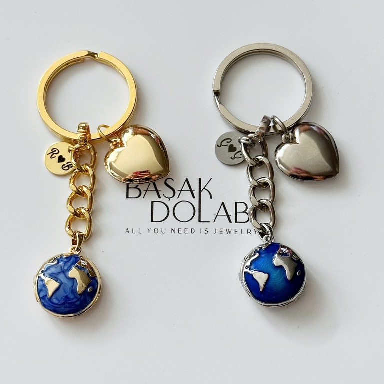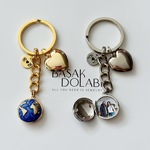 Kalp, Harf ve Fotoğraf Detaylı Açılıp Kapanabilir Dünya Locket Anahtarlık