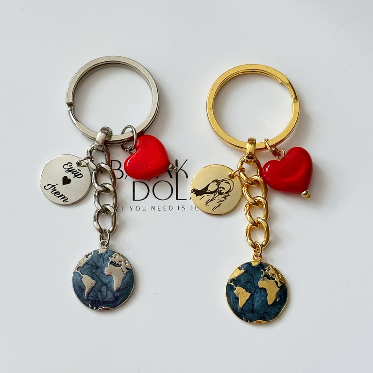 Kalp, Harf ve Portre Detaylı Dünya Anahtarlık