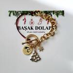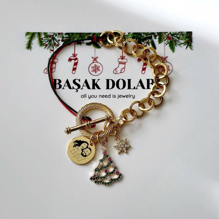 Kar Tanesi, Çam Ağacı ve Portre Yazı Detaylı Yeni Yıl Kırmızı Yeşil Beyaz Renkli Şans Bileklik