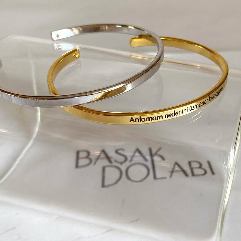 Kendin Tasarla Yazı Detaylı İnce Bilezik