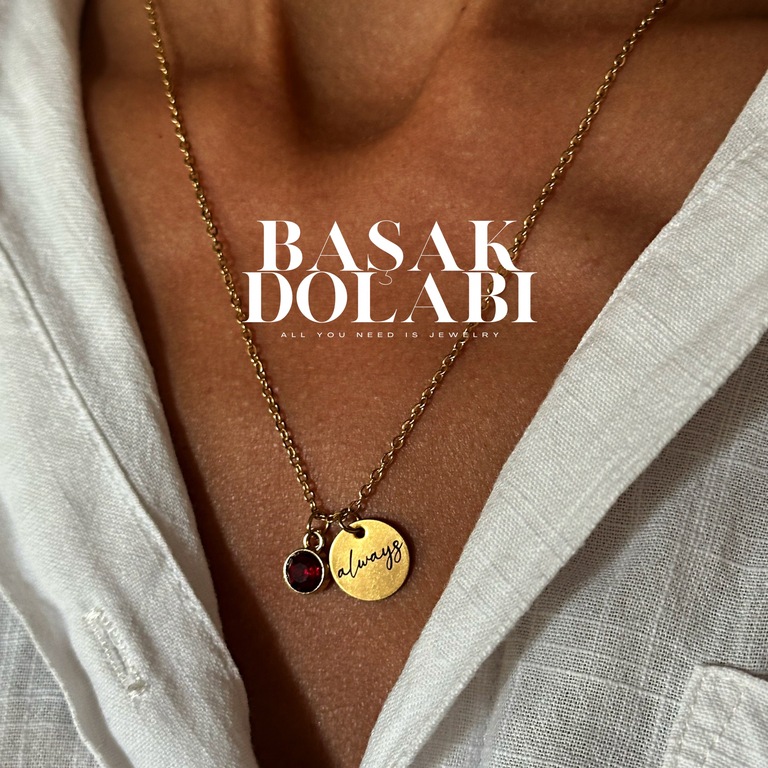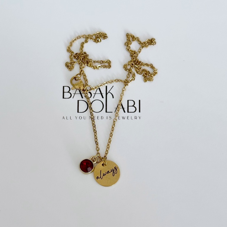 Kırmızı Damla Charmlı Yazı Plakalı Çelik Kolye