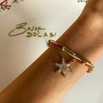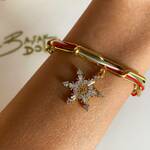 Zirkon Taşlı kar tanesi charm; iç içe geçmiş şans ipleri ve nazar boncuğu
