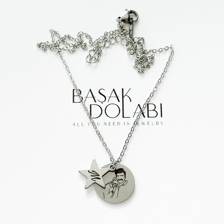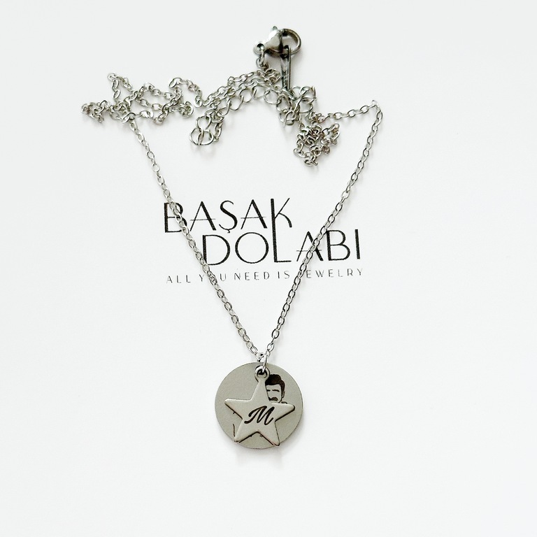 Yıldız Harf ve Portre Detaylı Çelik Kolye